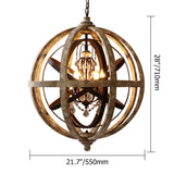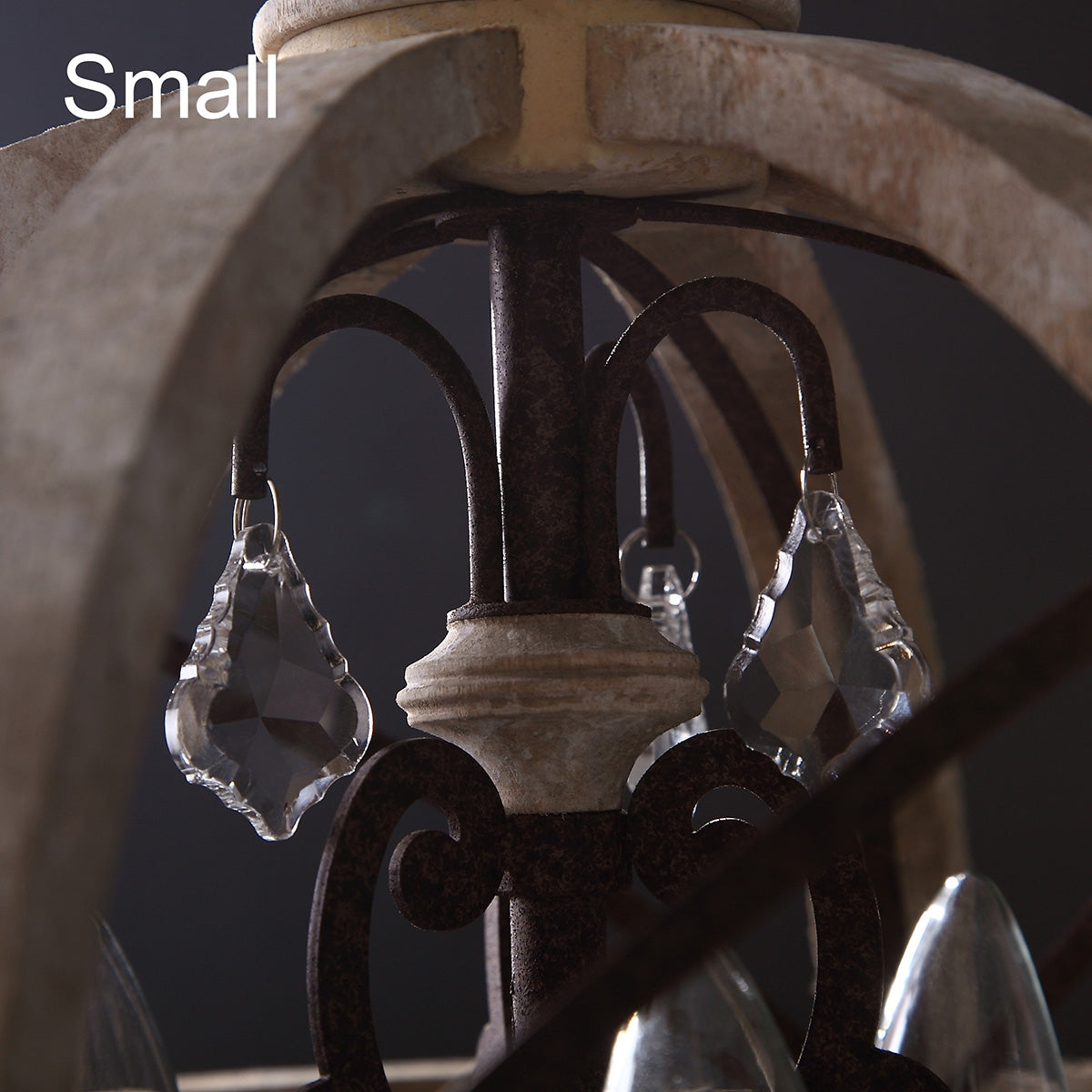 Retro Rustic Weathered Wooden Globe Metal Orb Crystal 5-Light Chandelier in Large