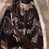 Retro Rustic Weathered Wooden Globe Caged Rust Metal Scroll Crystal 5-Light Chandelier Lighting