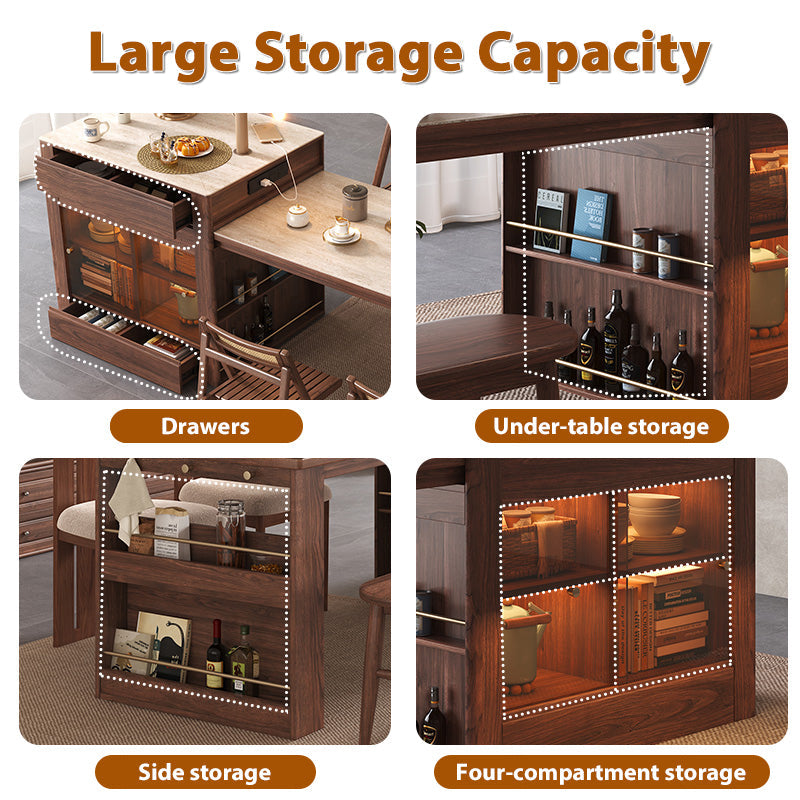 Multifunctional Kitchen Island & Extendable Dining Table with Sintered Stone Top in Walnut