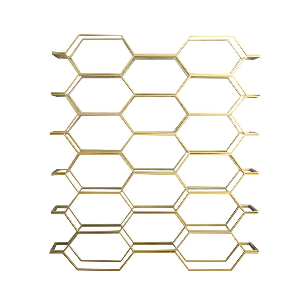 Decorate your study space with including this stylish contemporary honeycomb bookcase. It has a high-gloss lacquer finish and includes a shelving for storage that can be used to organize your wine, books and flower and other decorative items. It is stacked on top of one other and designed to look like a honeycomb bookshelf is made by the amalgamation of two metals and its structure remains sturdy and artistic.