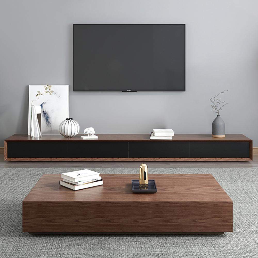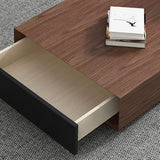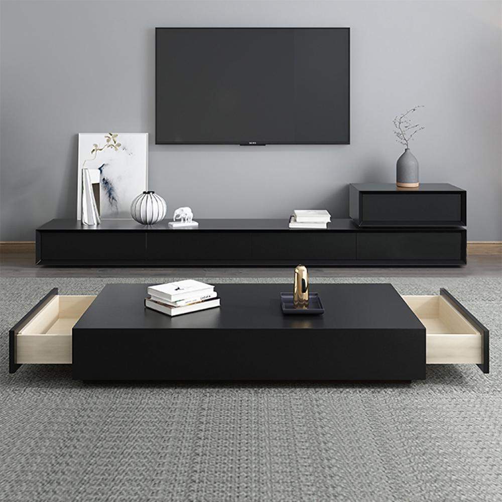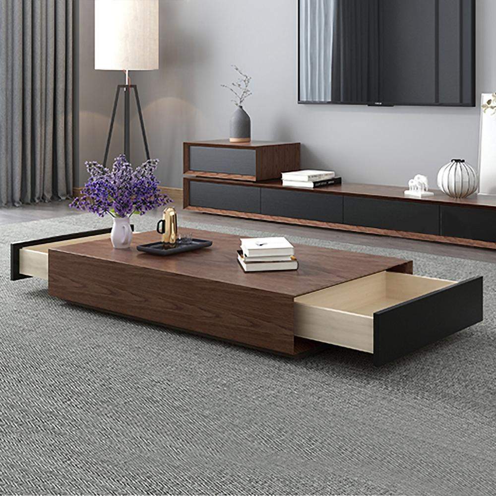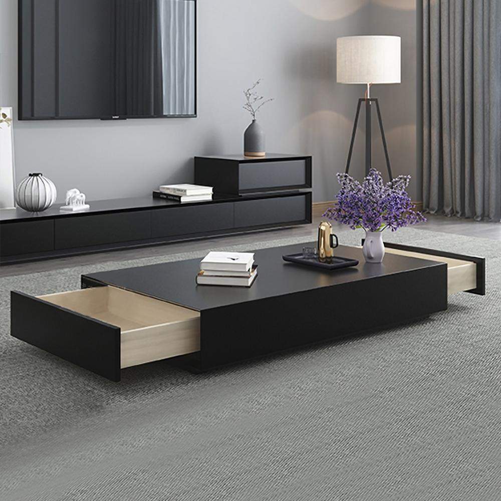 Mesa de centro rectangular negra con mesa decorativa moderna de 2 cajones
