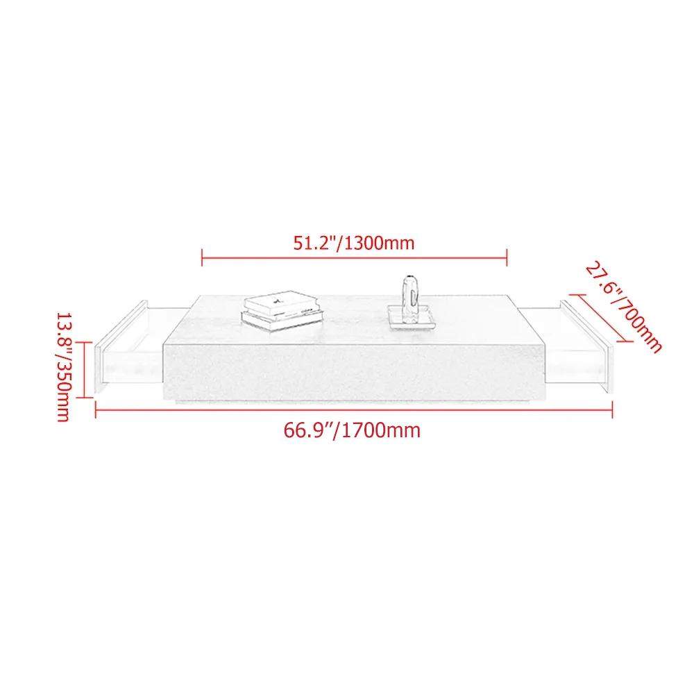 Dale sabor a tu sala de estar con esta moderna mesa de centro de buen gusto. La mesa de café tiene una silueta rectangular de líneas limpias para llevar su decoración al siguiente nivel de encanto. De lo contrario, dos cajones grandes ofrecen mucho espacio para sus artículos, mientras que su espaciosa parte superior proporciona un escenario espacioso para algunas baratijas decorativas, elegantes y encantadoras. ¡Llévate esta elegante pieza a casa!