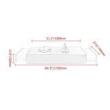 - Dimensiones generales: 66,9" L x 27,6" W x 13,8" H (1700 mm L x 700 mm W x 350 mm H)