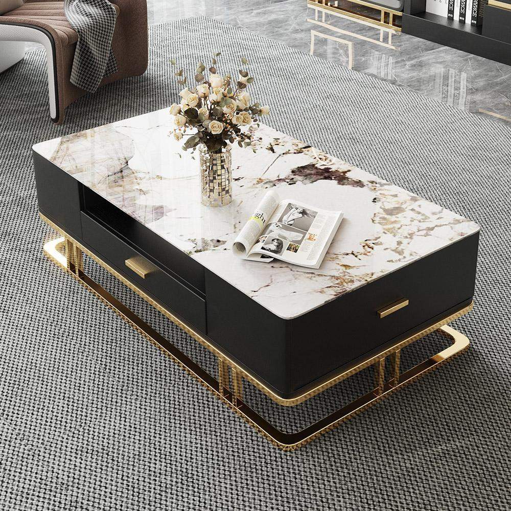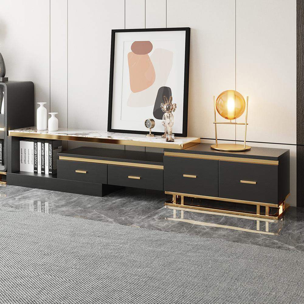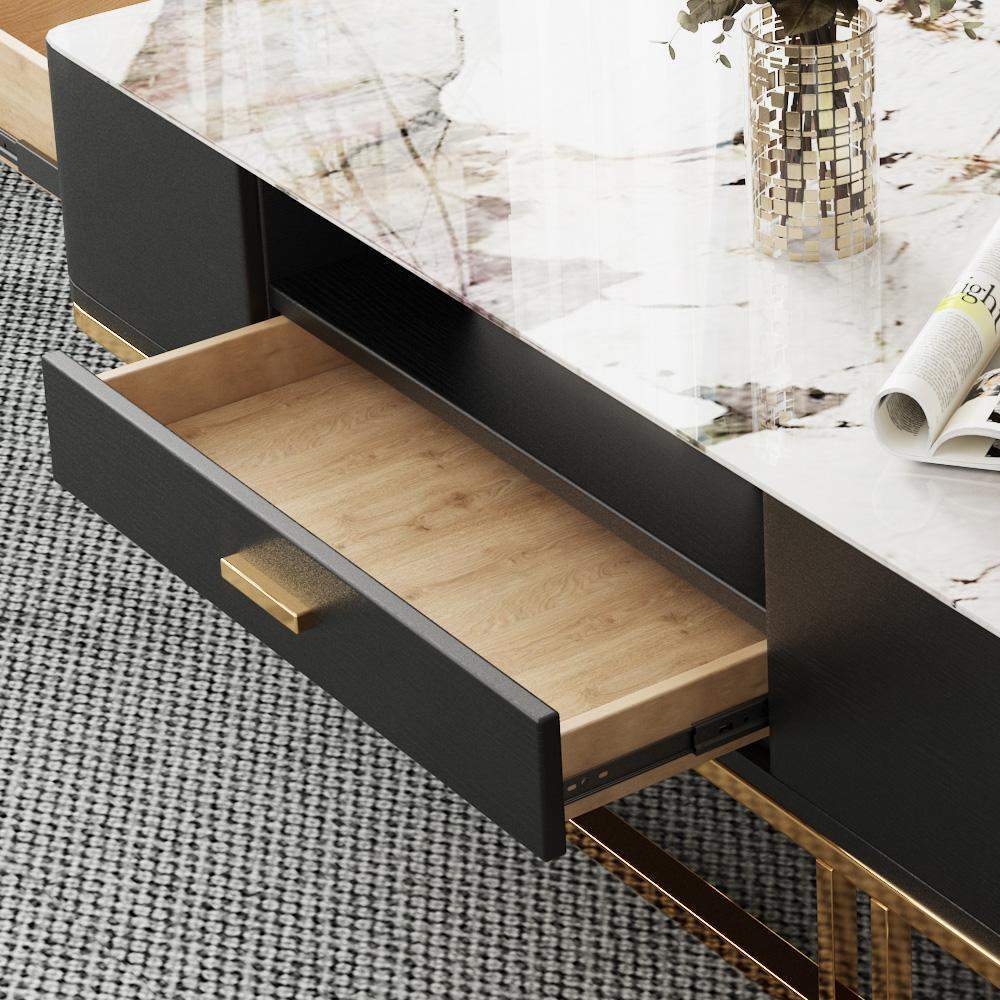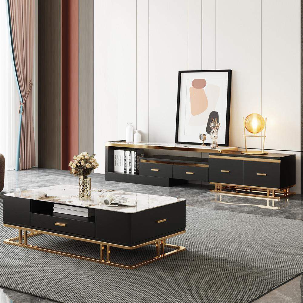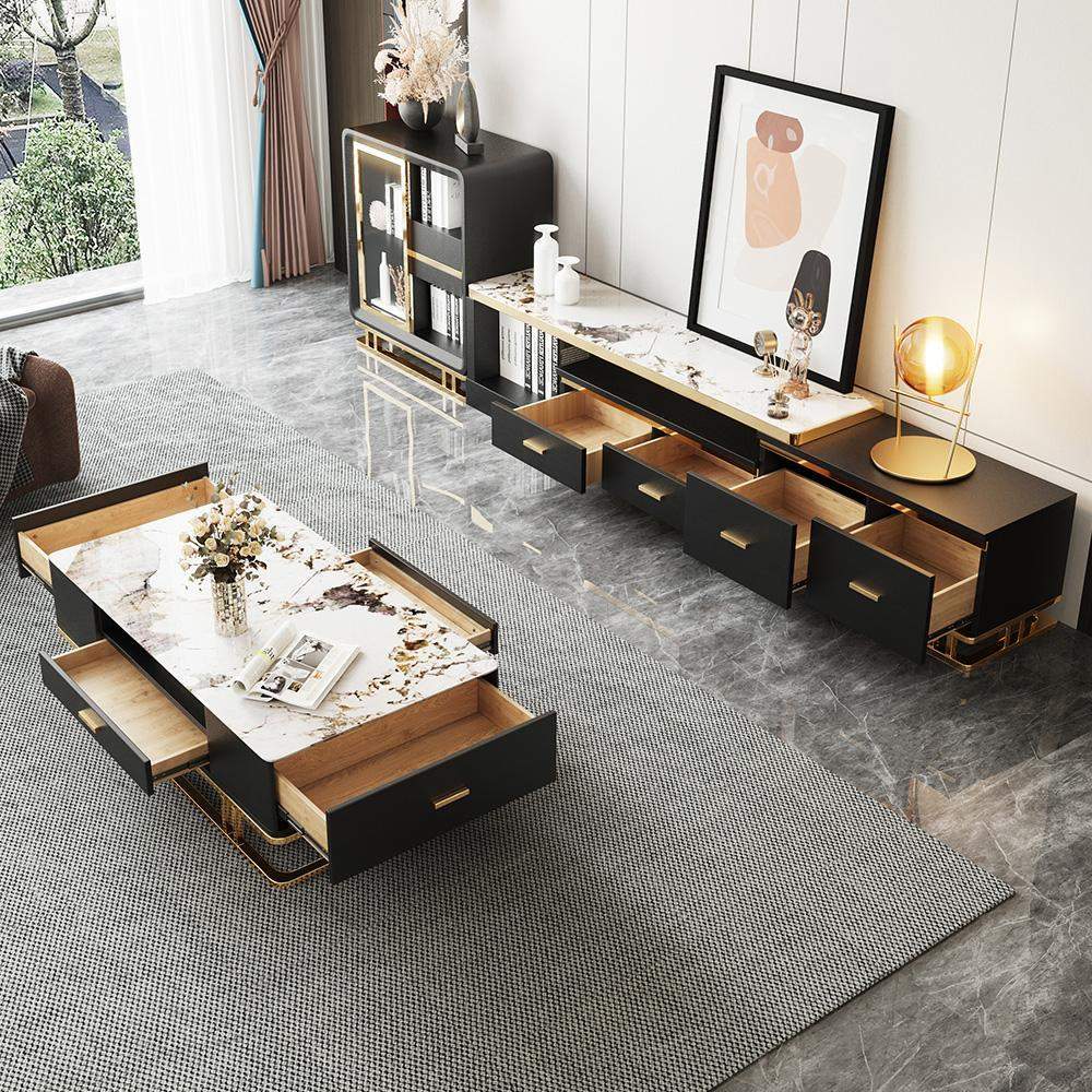 Juego de mesa de centro y soporte de TV moderno para TV de 100 pulgadas en negro con cajones