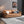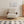 Sofá cama convertible de tela de pana con estructuras de acero inoxidable en color caramelo, gris y beige