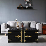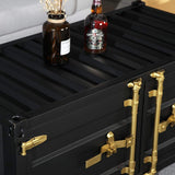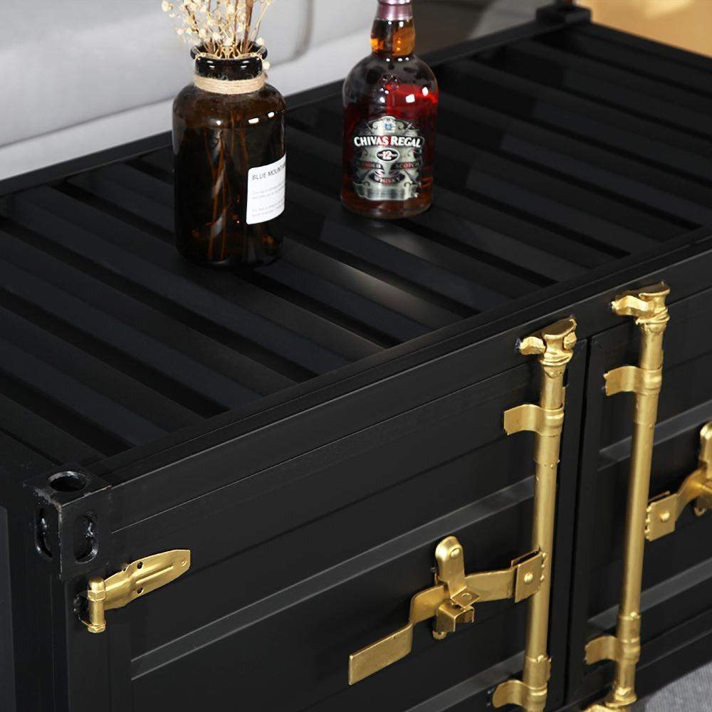 Mesa de centro negra y dorada de estilo industrial con contenedor de carga de 39" con 2 puertas de almacenamiento