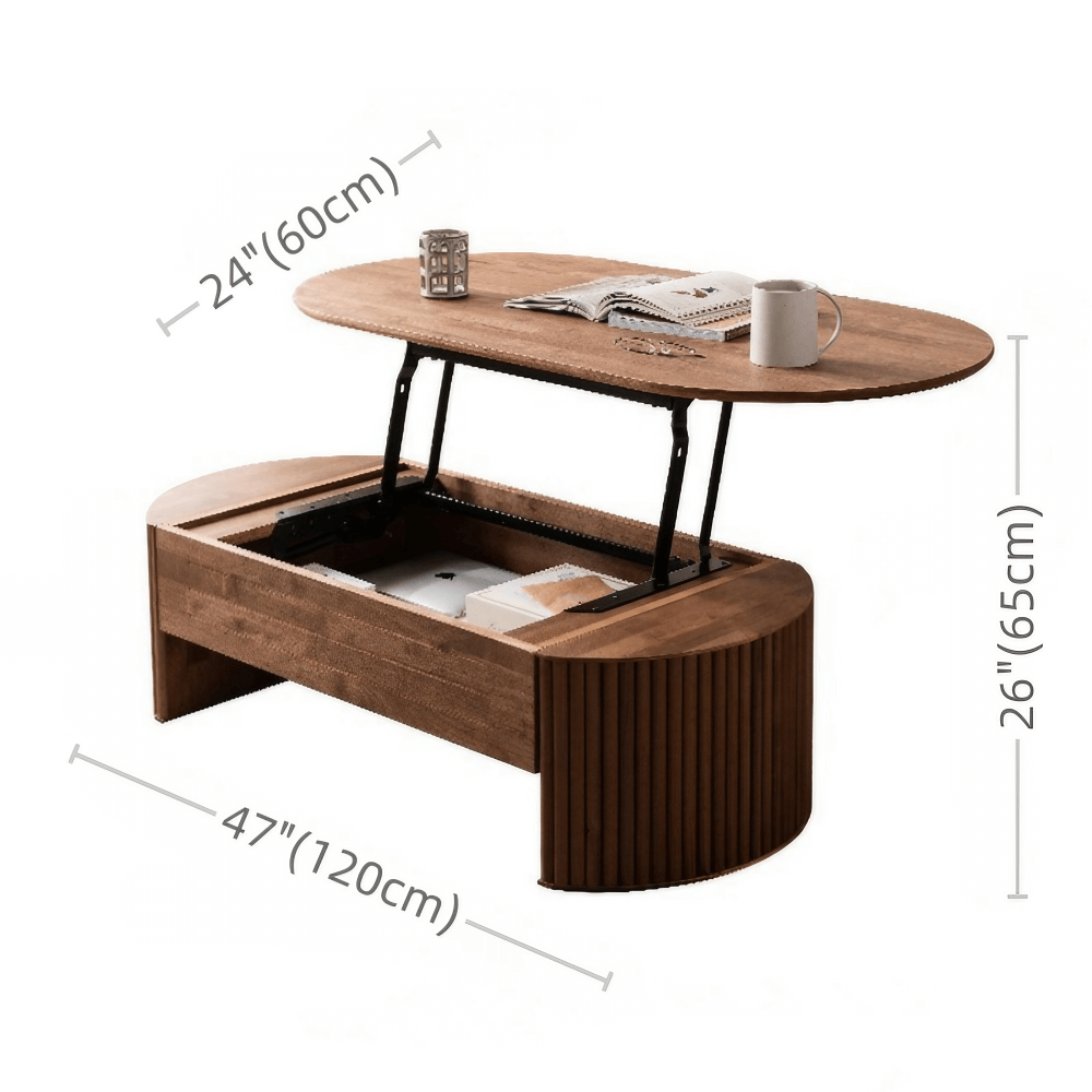 Mesa de Centro Ovalada Multifuncional de Madera Maciza - Elevable de 47", Acabado en Nogal
