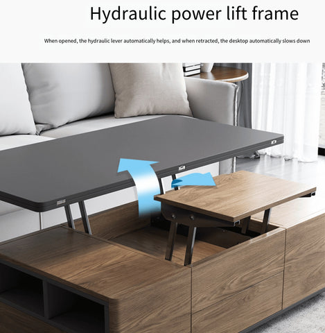 DISEÑO ELEVABLE: Esta exclusiva mesa de café tiene un elevador hidráulico que es ideal para el trabajo, comidas ligeras y almacenamiento adicional. Cuando necesite cenar en familia, puede hacerlo. Ha pasado de ser una mesa de centro a una gran mesa de comedor con capacidad para 4 a 8 personas.
