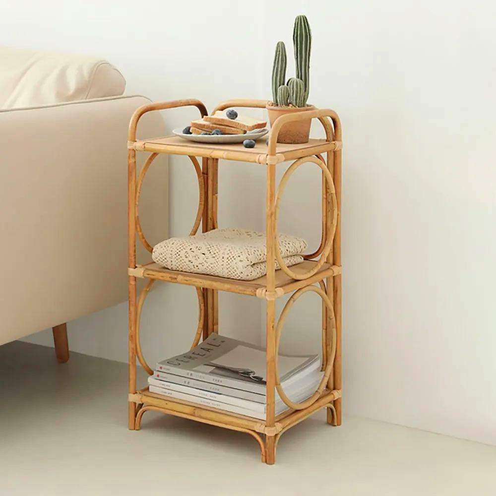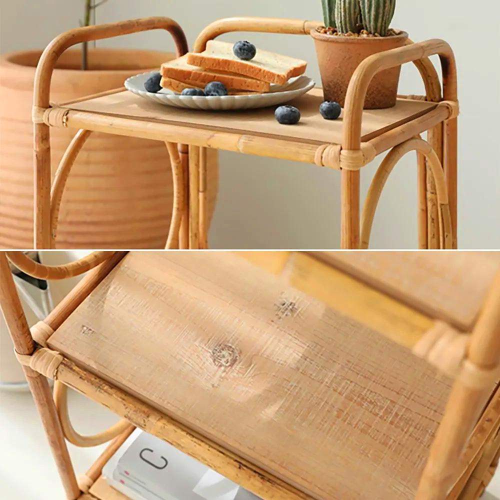 Mesa auxiliar de madera de granja con mesa auxiliar tejida de ratán de 3 niveles