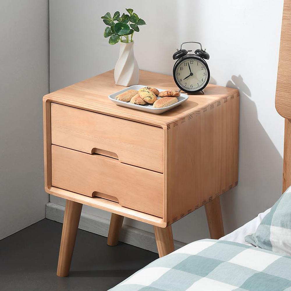 Mesita de noche de madera nórdica con 2 cajones Mesita de noche pequeña con almacenaje, Natrual