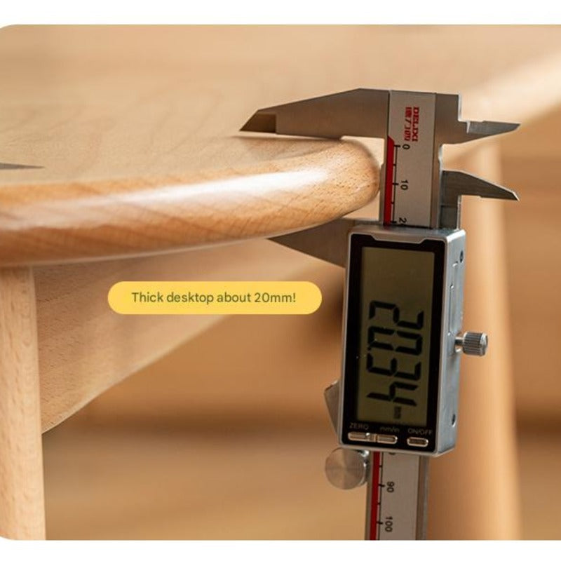 La mesa está construida con madera de haya 100% natural, importada de Europa de forma experta. Conocida por su veta fina y recta, la madera ofrece una textura uniforme y un cálido color que realza cualquier espacio. La madera de haya es reconocida por su dureza media a alta, garantizando tanto belleza como durabilidad a lo largo de los años.