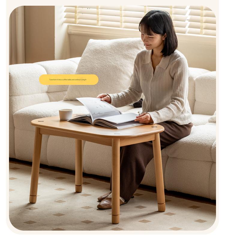 Diseñada pensando en los niños, la mesa cuenta con un centro de gravedad estable para evitar volcaduras, y un marco inferior resistente con juntas de expansión reservadas para minimizar grietas y deformaciones. Las patas son redondas y sólidas, asegurando que tus hijos estén seguros incluso durante sesiones de juego enérgicas.