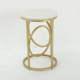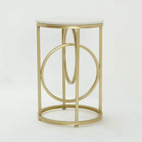 Mesa auxiliar redonda blanca con parte superior de mármol, mesa auxiliar de metal dorado