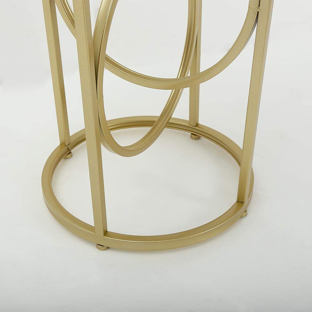 Simple pero elegante, esta mesa auxiliar en forma de cilindro le da a tu sala de estar un toque de estilo sofisticado. El tablero de la mesa está hecho de mármol, que es a la vez hermoso y moderno, además de limpio y duradero. El diseño del marco de metal es simple y generoso. Cualquiera que sea su elección, la elegante mesa auxiliar proporciona un acento perfecto para su espacio de vida moderno. Perfecta para guardar bocadillos, bebidas o su libro favorito, esta mesa auxiliar le da un estilo romántico a cualquier conjunto.