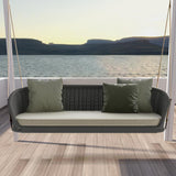 Détendez-vous sur notre canapé swing, qui mesure 70,9 "L x 25,6" D x 18,9 "H (1800 mmw x 650 mmd x 480 mmh), accueillant confortablement 3-4 personnes. La couleur vert foncé et la conception traditionnelle de rotin complèteront tout espace extérieur. Le coussin est inclus, avec un motif aléatoire pour un caractère supplémentaire. Aucun assemblage n'est requis, ce qui rend la configuration un jeu d'enfant. Pour le maintence, il suffit de nettoyer avec un chiffon sec.