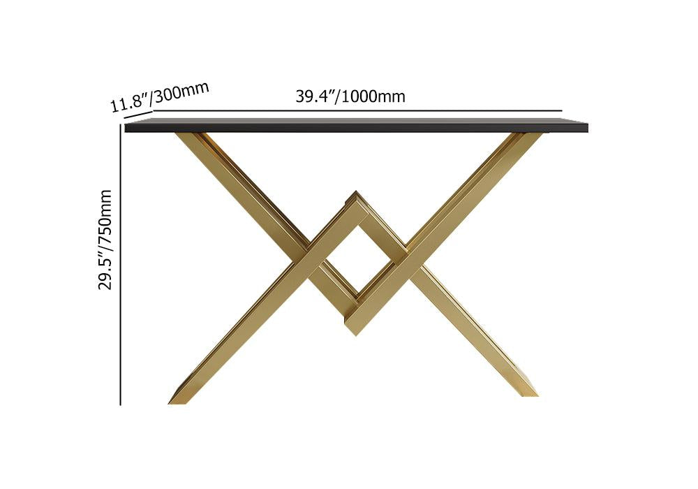 Table accent de table de console étroite noire et or pour l'entrée x métal de base en petit