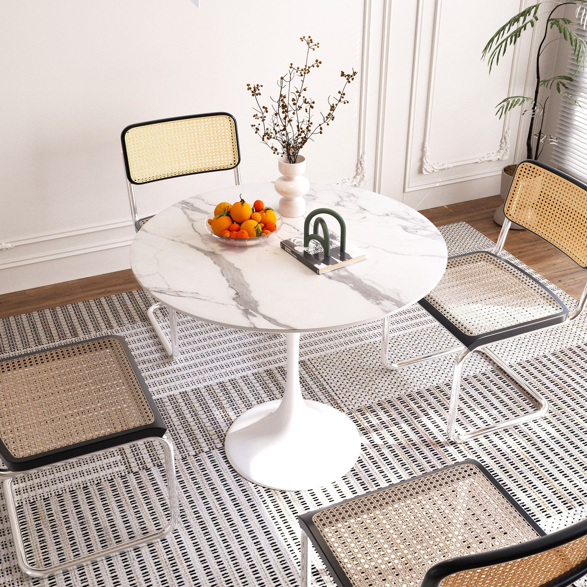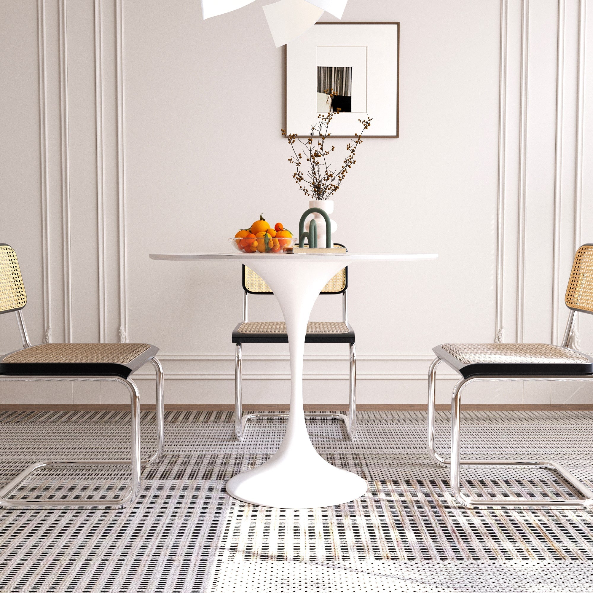 Élevez le style et la fonctionnalité de votre espace de salle à manger avec notre Table à Manger Ronde Minimaliste en Marbre Blanc. Conçue pour accueillir confortablement jusqu'à 4 personnes, cette table est parfaite pour les petites réunions et les repas en famille. Le plateau en pierre frittée ajoute non seulement une touche d'élégance avec sa finition blanche et lisse, mais est aussi conçu pour être durable. Il résiste aux rayures et aux hautes températures, ce qui en fait un choix pratique pour un usage quotidien.