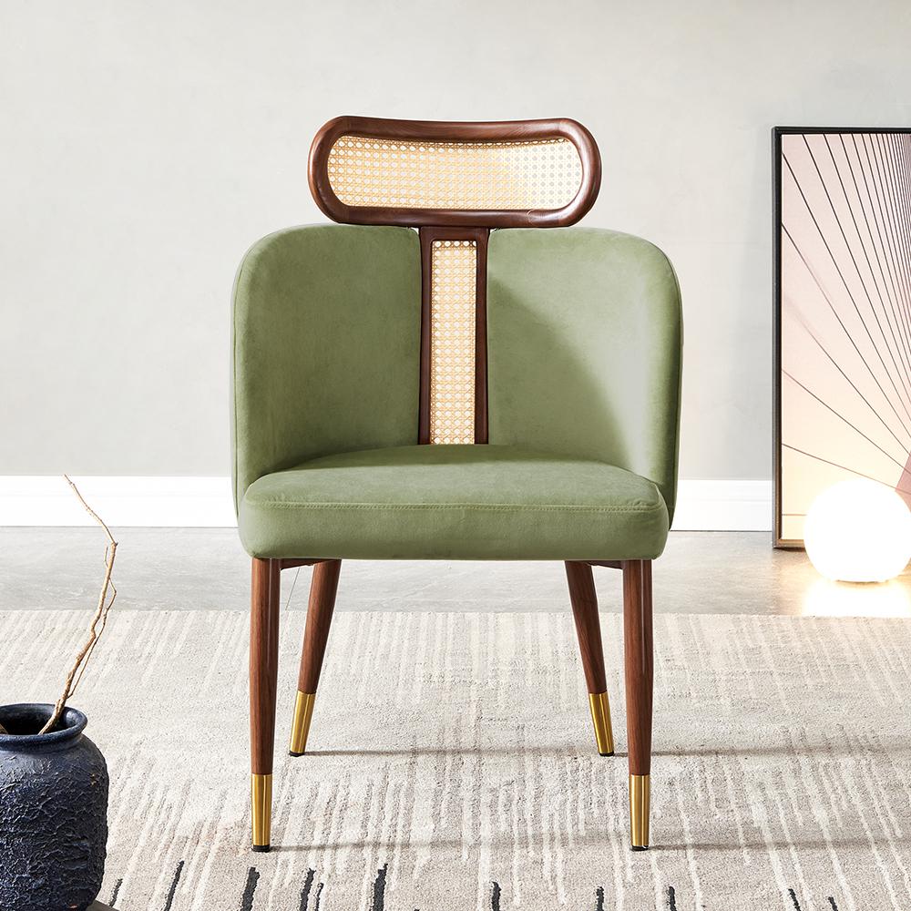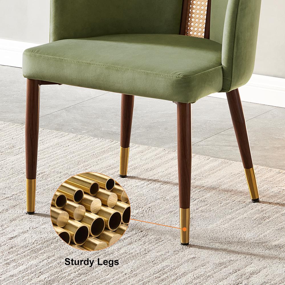 Les chaises à manger arrière incurvées peuvent transformer instantanément l'apparence de votre espace de restauration ou de tout autre espace de vie contemporain. Les cendres de noyer naturelles, le rotin et le rembourrage vert font la paire parfaite pour créer le meuble le plus frappant pour votre espace de vie. Les sièges sont rembourrés avec un rembourrage en mousse à haute densité pour offrir un confort. Le siège est construit sur quatre jambes, il offre un soutien solide.