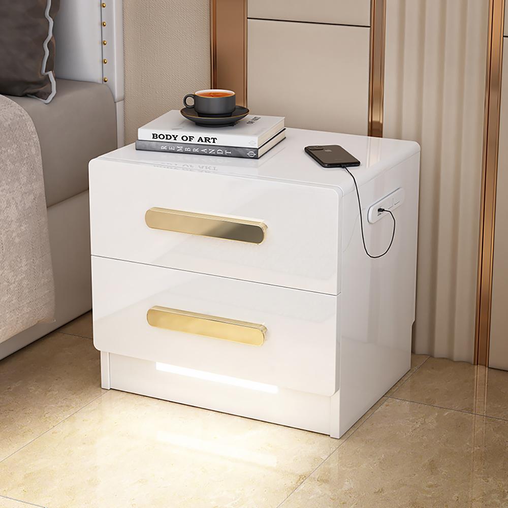 Aucune chambre n'est complète sans la table de chevet parfaite. Cette table finale attrayante ajoutera un attrait contemporain et une commodité maximale à votre maison. Il comprend des ports USB pour créer un endroit pratique pour charger des électroniques comme les smartphones, les tablettes et plus encore! La lumière du capteur offre une lueur douce et chaude pour éclairer la nuit. Deux tiroirs vous fournissent un espace supplémentaire pour ranger tous les articles divers que vous préférez que vos invités ne voient pas. Laquée en blanc brillant, cette superbe table de chevet est tout ce dont vous avez besoin et plus.