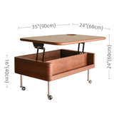 Table basse rectangulaire en bois massif de 35'' avec roues verrouillables et design multifonction en caramel