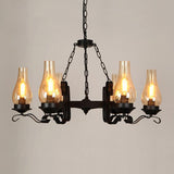 Massie ヴィンテージ チムニー ガラス シェード 6ライト シャンデリア ブラック メタル ワゴン ホイール