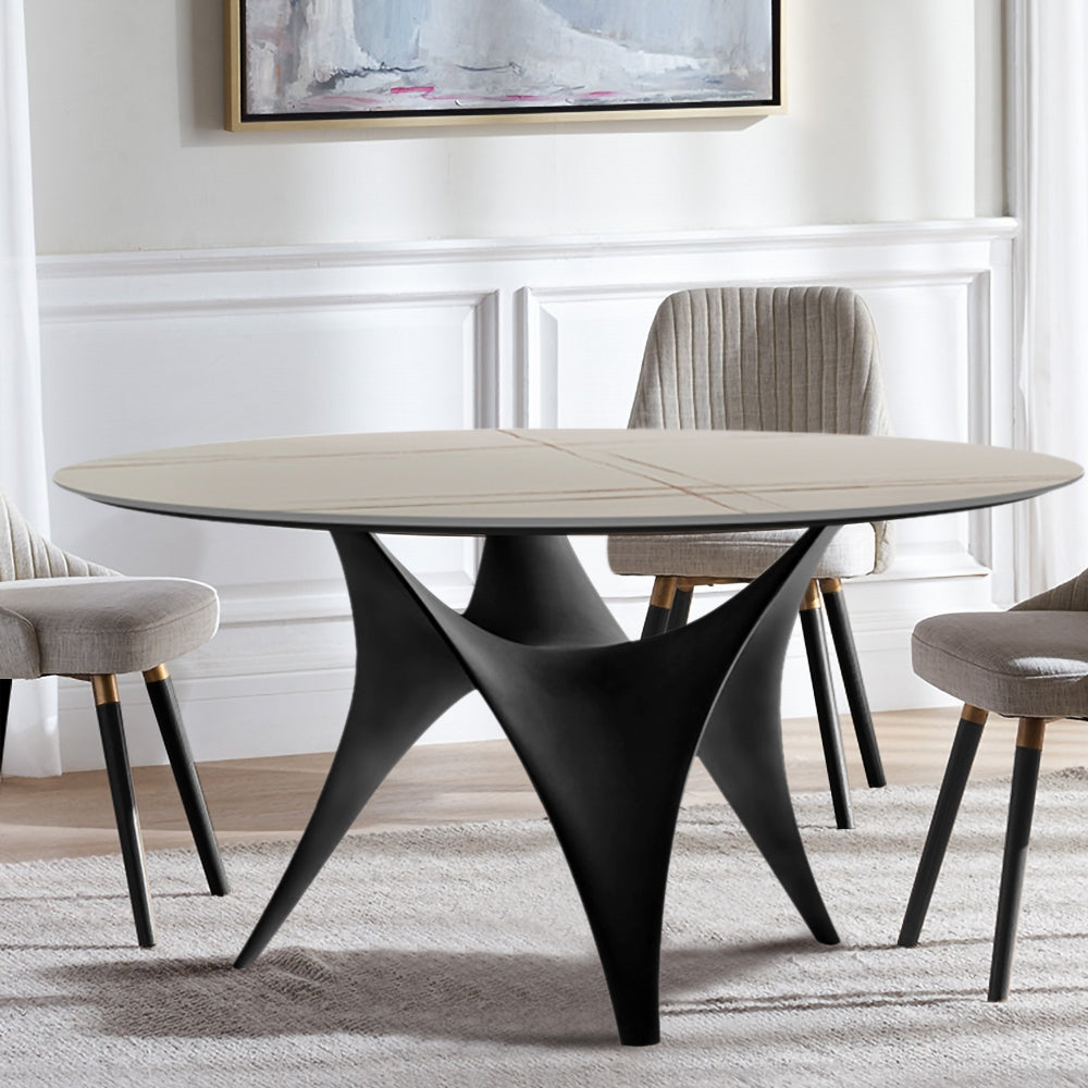 この丸いダイニングテーブルで、超音速スタイルでダイニングスペースを装飾してください。黒い仕上げで金属製の製作されたこのテーブルは、重い卓上を保持するモダンな彫刻の台座ベースを特徴としています。エレガントな白い色は、あなたの部屋にモダンなスタイルを注入するために魅力的な黒い色をコントラストします。石の表面上の上部は滑らかな仕上げを披露します。これにより、傷、熱、フェージングに抵抗しながら簡単に掃除し、今後何年も美しさを保ちます。家族と一緒にカジュアルな夕食を提供したり、友達とハッピーアワーを務めたりしてください。総ダイニングテーブルは47.2 "DIA X 29.5" hです。