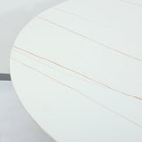 47.2 "ラウンドホワイトフェイクマーブルダイニングテーブルブラックベース