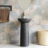 このアンティークの黒い台座シンクは、屋内と屋外のスペースにビンテージの雰囲気を与えます。大胆でユニークな彫刻が施されたディテールを特徴とする、丸い厚い流し台、薄い容器、ぽっちゃりした台座のベースが付いています。 Kaolin Clayから作られたこの台座シンクは、長期にわたる使用と外観を保証します。あなたの家の改善のための素晴らしい選択。手作りの職人技により、各製品間にわずかなバリエーションがあります。
