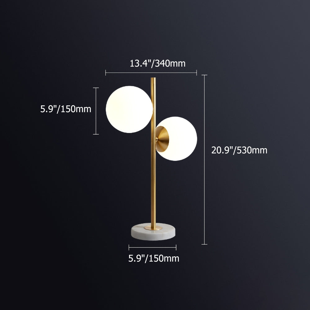 ゴールドモダンLEDグローブテーブルランプ2ライトホワイトガラスシェード大理石のベース