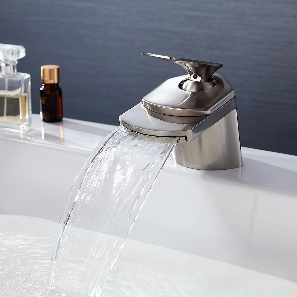 現代の1ホールの滝の浴室シンク蛇口蛇口シングルハンドルブラシ付きニッケル固体真鍮