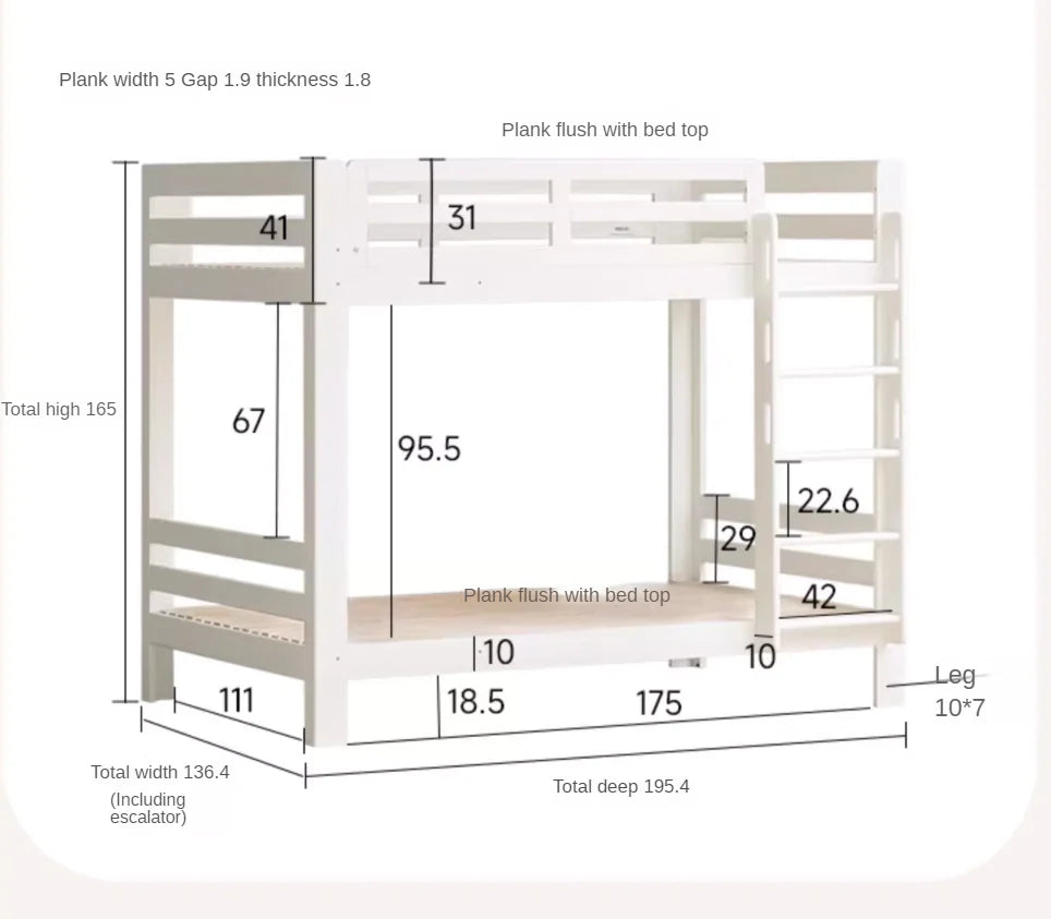 この二段ベッドは100%純無垢材で作られており、人工板やスキン、フィンガージョイントを使用していないことを保証します。主な材料は次の通りです: