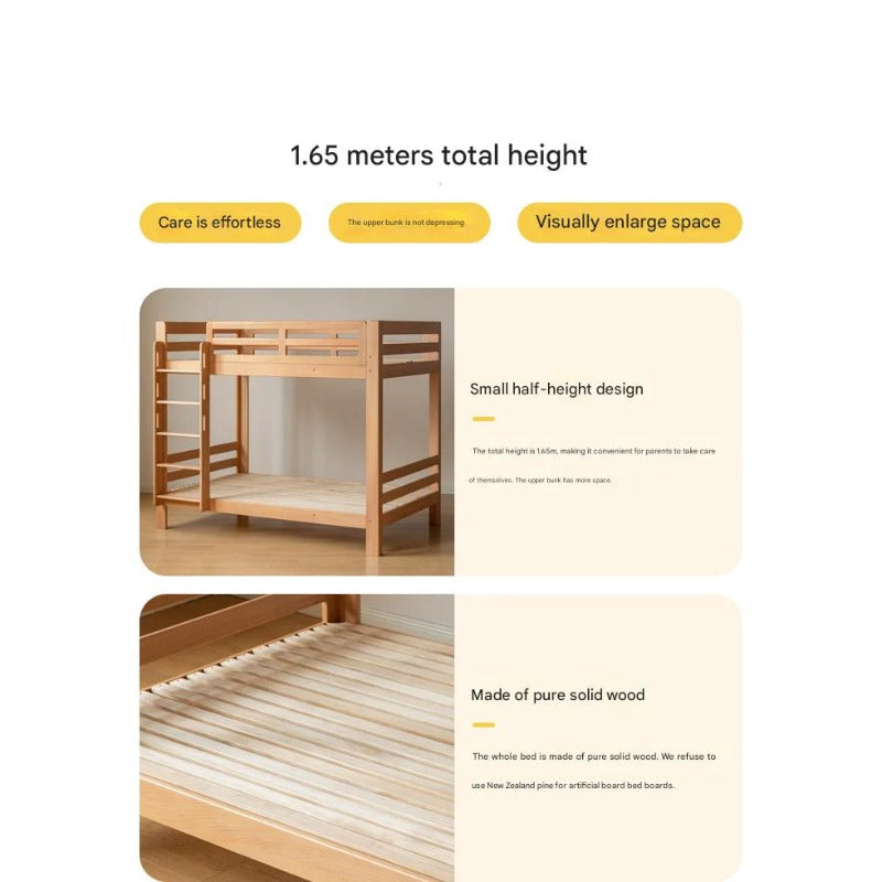 ビーチ材とバーチ材の無垢材二段ベッドで居住空間を変革しましょう - 安全性と美観を重視する家庭にぴったりの印象的で機能的な追加品です。