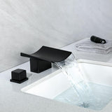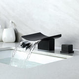 Grop Matte Black Waterfall Widespread Bathroom Sink Faucet Double Knobs