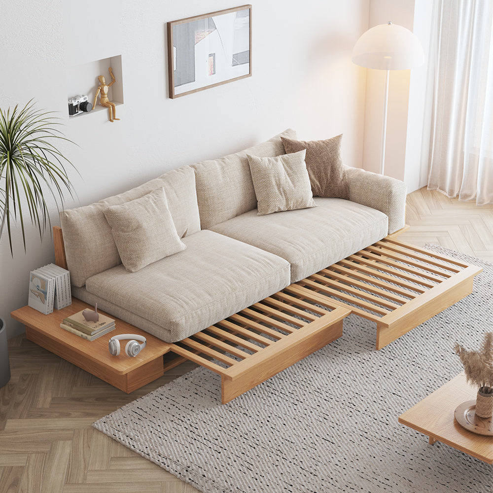 WEHOMZ Modern Solid Wood Beige Folding Sofa Bed – Cotton Linen Upholstery & Reversible Armrest