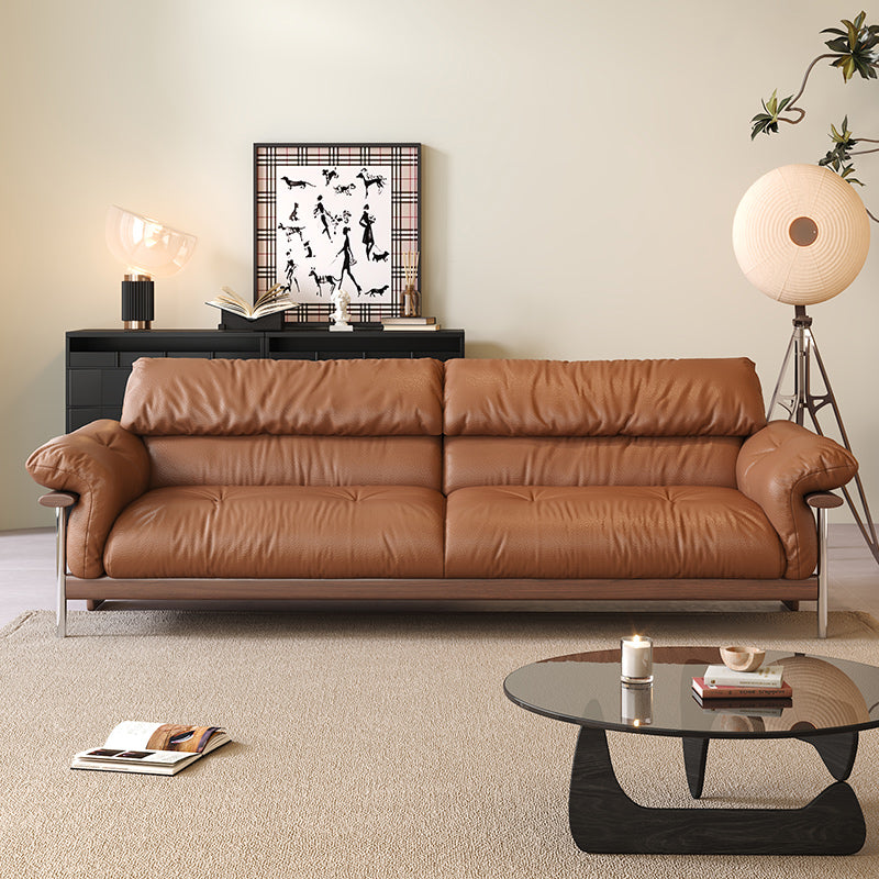 WEHOMZ Modern Three-Seater Sofa in Top-grain Leather with Stainless Steel Legs
