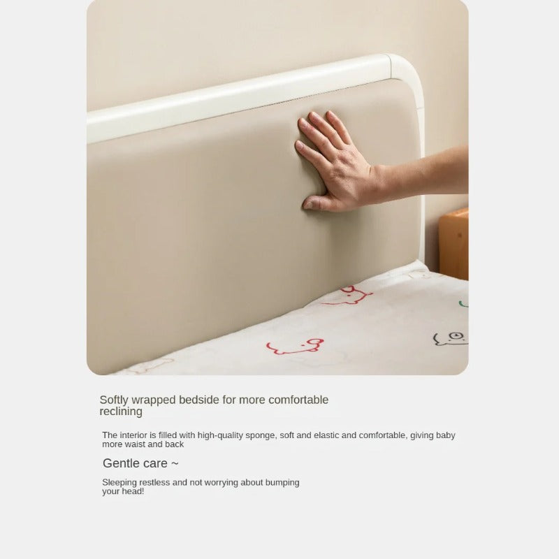 With an optimal height of 38cm when paired with an 8cm mattress, climbing in and out of bed is easy and comfortable for children of all sizes. The softly wrapped bedside provides a cozy and secure area for relaxation.