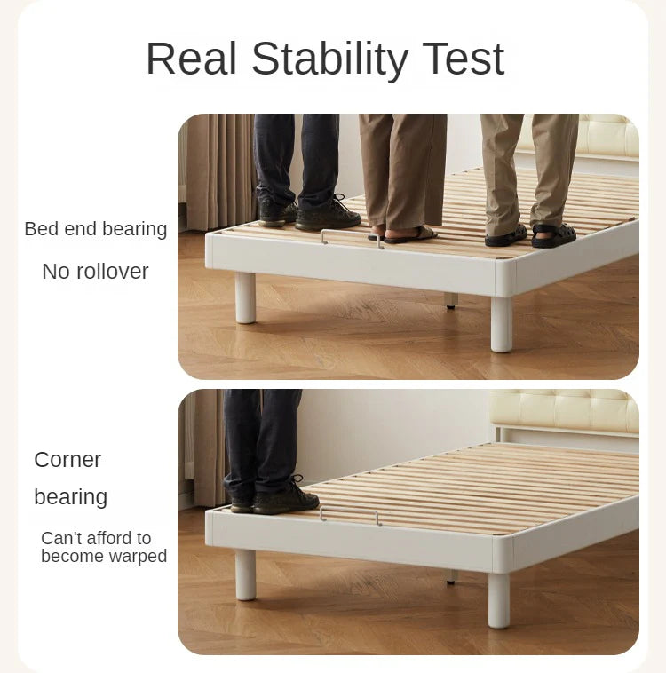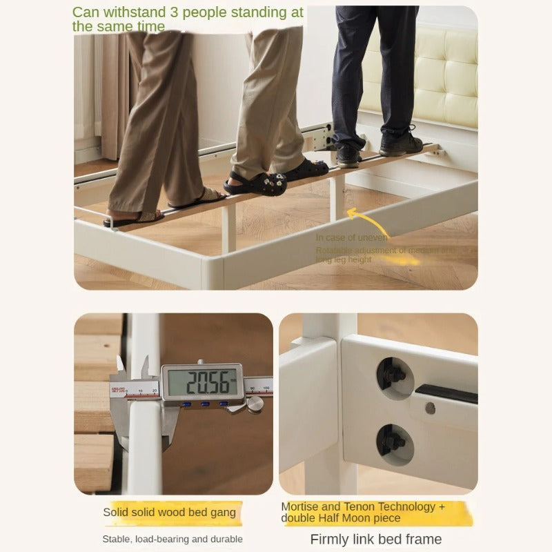 Crafted from 100% pure solid wood, our bed features rubber wood imported from Thailand and New Zealand pine, ensuring durability and stability. The rubber wood is renowned for its hard texture and resistance to deformation, expansion, and cracking. This wood is enhanced with finger jointing technology to promote even stress distribution, ensuring your bed maintains its shape over time.