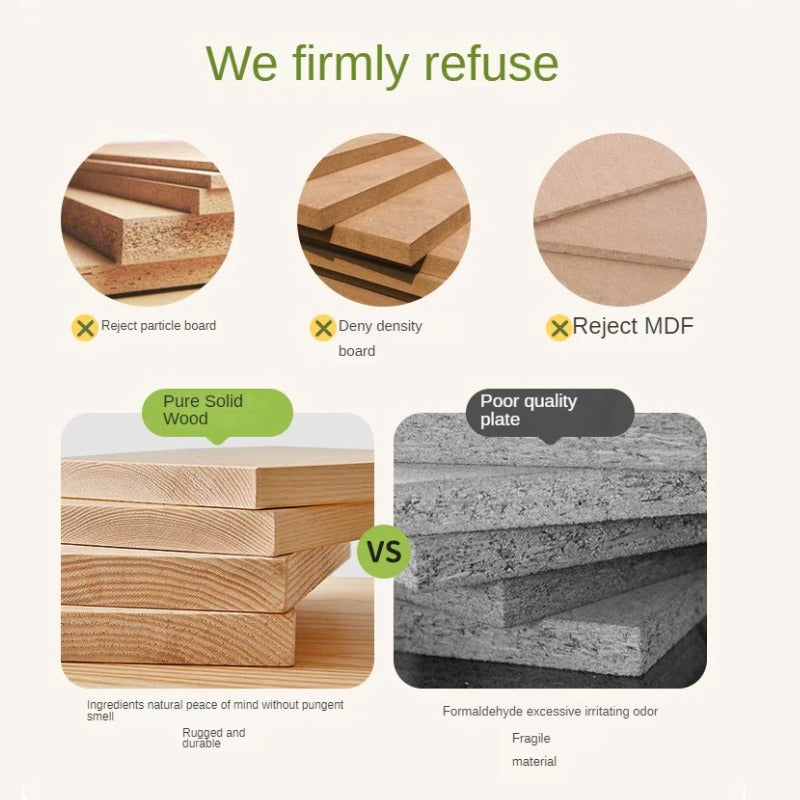 • 100% pure solid wood construction—no veneers or artificial panels used.