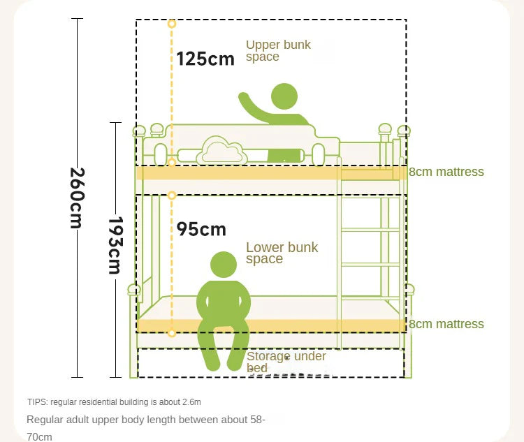 Dimensions may vary slightly (+0.5cm) due to different measurement methods and production batches. The design allows for efficient space utilization, making it perfect for small apartments or shared rooms.